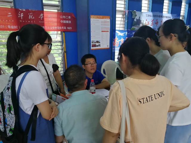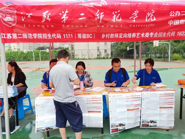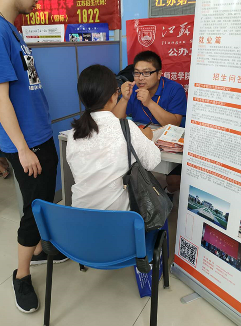 6月26日,上午,教科院副院长陈国庆、党总支副书记张志行以及郭松、张乐老师等一行前往淮安市淮阴师范学院参加省2019年高考考生职业生涯指导与志愿填报咨询会。在现场热心为众多前来咨询的考生及家长解答我校今年的具体招生政策及相关情况。下午则兵分三路,分别前往清江中学、淮阴师范学院附属中学、淮安市第一中学开展招生宣传活动。