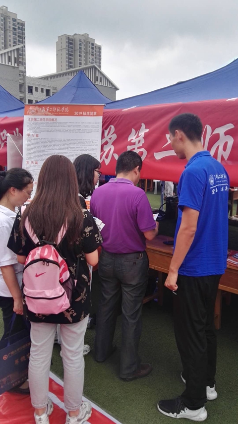 数信学院招宣队由17位老师组成,查圣祥老师作为南京市招生咨询老师接受考生的电话咨询;17位老师在院长朱辉生,党总支副书记凌晓牧、陈艳的带领下赴南京国际展览中心、荔枝广场及南京各区中学开展招生宣传。6月24日,招宣队成员参加了江苏教育频道在荔枝广场组织的高考招生咨询会。6月25日,院领导班子成员带领两位老师、招就处工作人员与体育部两位老师参加了江苏省高校招生就业指导服务中心和江苏省考试院、南京市招办组织的高考招生咨询会。招宣队其他人员进入到南京市第九中学、南京市第二十九中学、江宁高级中学、溧水高级中学、高淳高级中学等五所学校进行招生宣传。6月26日招宣队进入南京市第十三中学、中华中学、六合高级中学等三所学校进行招生宣传。