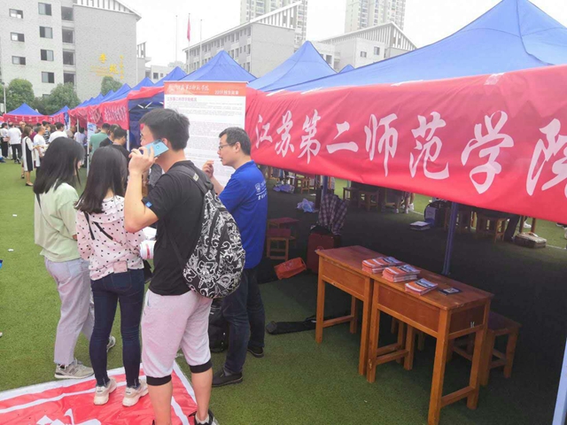 6月26日,经法学院四支招宣队伍在苏州市国际博览中心报考咨询会,吴江中学、吴江高级中学、江苏震泽中学、张家港梁丰中学、常熟市中学、江苏省太仓高级中学等地开展招生宣传。场面火热,家长学生咨询人数较多。