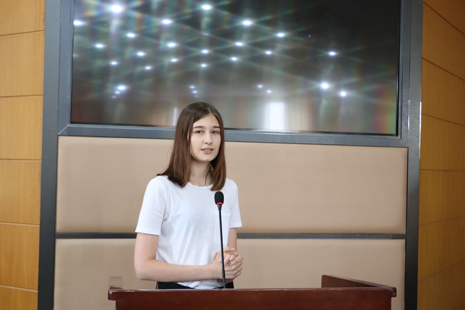 带队教师洛巴诺娃女士和营员代表分别发言。洛巴诺娃女士代表莫斯科州国立大学向我校赠送礼品以表感谢,并表示将协助做好夏令营的各项工作。营员代表用汉语表达了自己对中国文化的向往以及对这次夏令营活动的热切期待。