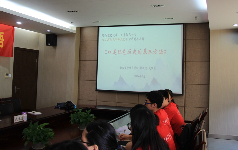 武黎嵩教授从具体个案南京大屠杀口述历史记载入手,结合大运河流域江苏段流经城市红色历史,引导调研团成员在采访的过程中注意前期准备,找准问题切入点,挖掘红色故事。