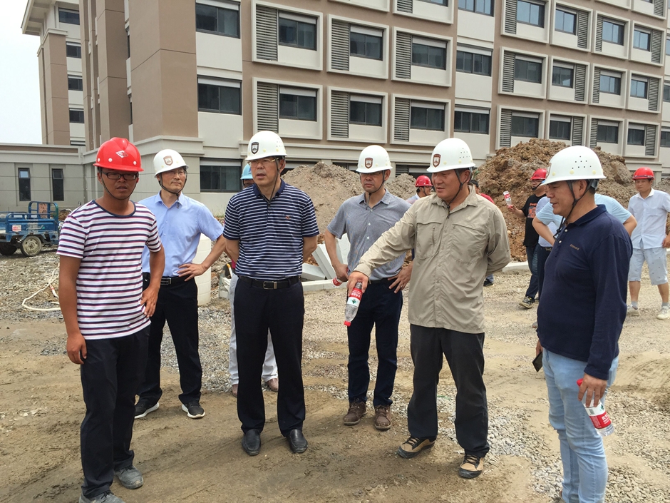 7月8日上午,党委书记王仁雷、校长王建,校领导潘文、祝兴成、刘贵友等赴石湫校区视察工程建设进展情况,基建处、信息化办公室、后勤服务总公司、监理和各施工单位主要负责同志陪同视察。