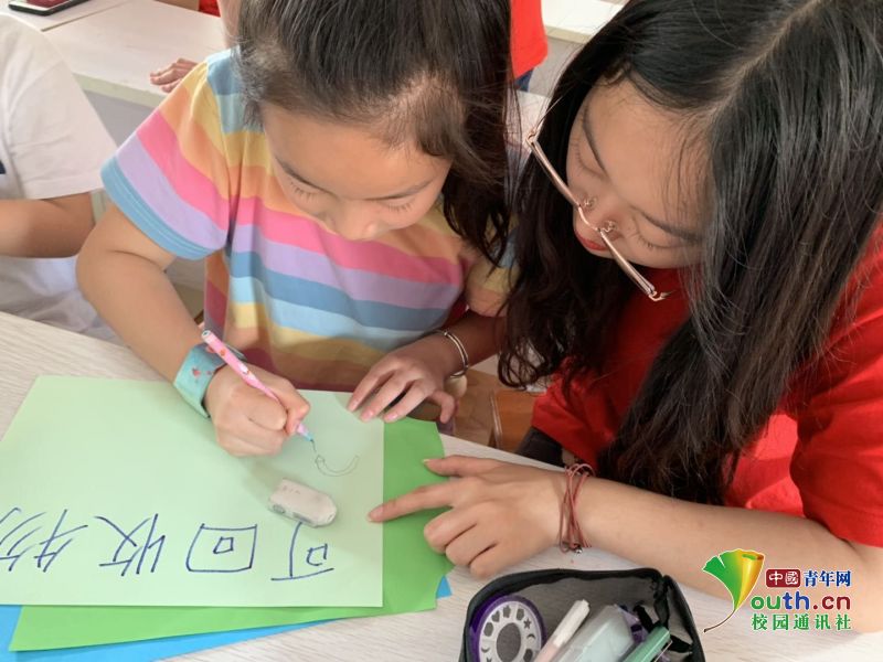 志愿者带领小朋友动手实践中国青年网通讯员赵蕾摄