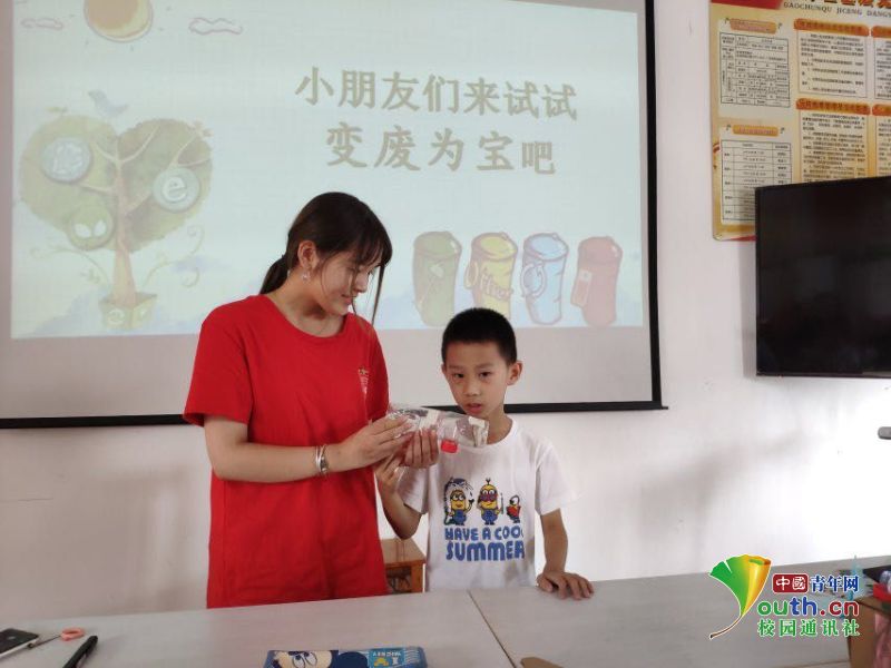 中国青年网南京7月9日电(通讯员高艺榕)为了更好地奉行绿色垃圾分类的理念,响应习近平主席的垃圾分类的重要指示,7月9日,江苏第二师范学院“牵手红领巾,共筑中国梦”小分队赴高淳开展了带领小朋友垃圾分类的活动。培养小朋友们垃圾分类的好习惯,为改善生活环境做努力,促进全民携手低碳,推进生态文明建设,更是为了实现“两个一百年”目标中将我国建成文明和谐美丽的社会主义现代化强国。