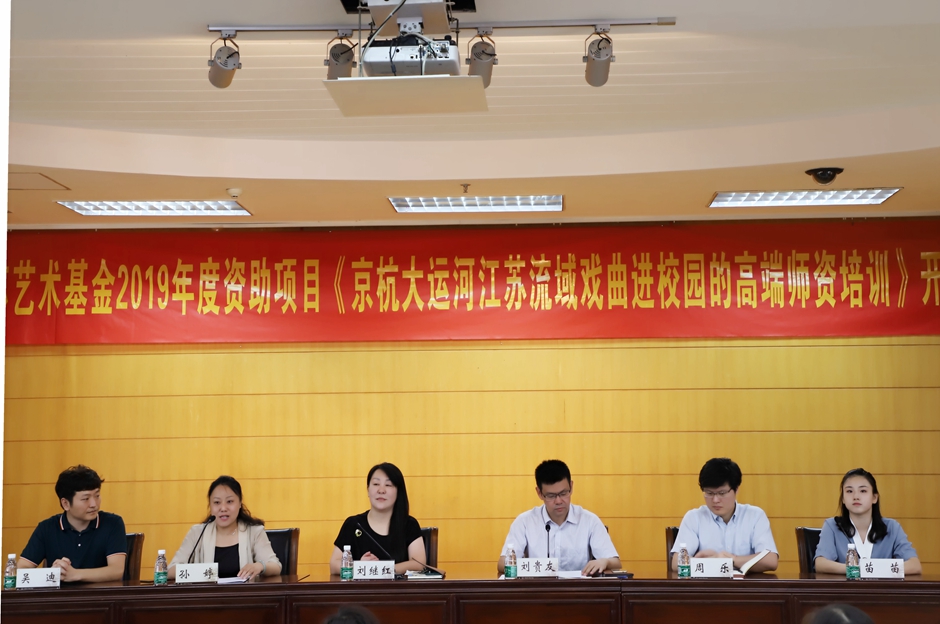 7月20日上午,我校在草场门校区举行江苏艺术基金2019年度资助项目《京杭大运河江苏流域戏曲进校园的高端师资培训》开班仪式。党委副书记、副校长刘继红,副校长刘贵友出席活动。来自全省的21名学员参加活动,校大学生艺术教育中心主任孙婷主持活动。