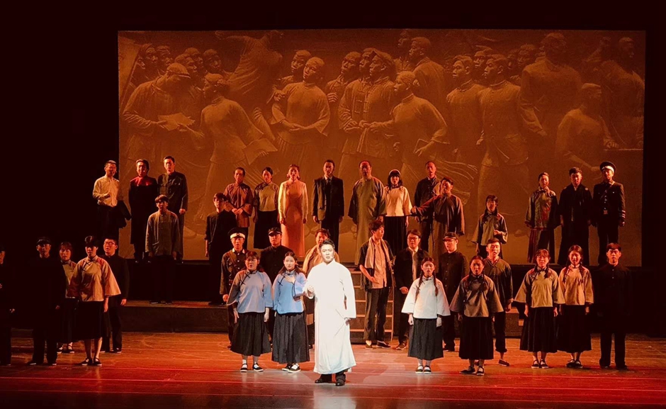 江苏艺术基金2019年度大型舞台资助项目《五四青年周恩来》讲述了五四运动时期周恩来积极投身爱国运动,从爱国青年转变为学生领袖,寻求救国之路的故事。演出结束后,全体领导赴后台亲切慰问剧组演职人员。