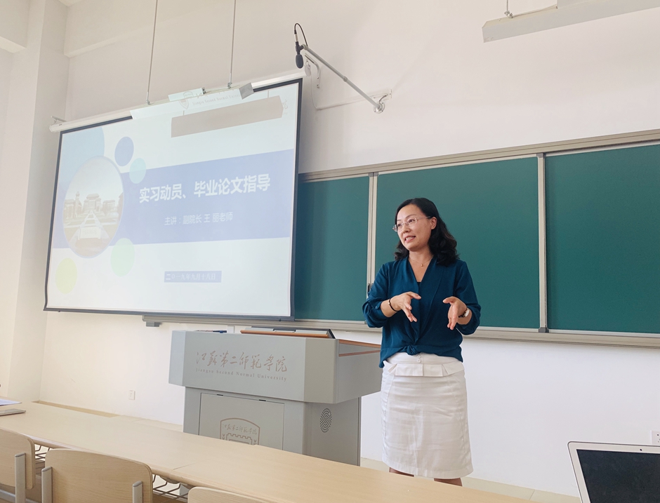 会上,王丽就毕业实习工作安排、毕业论文撰写进行了专题辅导。她针对毕业论文选题的确定、文献的收集、研究方法的选择和运用以及毕业实习环节安排和实习要求作了详细说明,对毕业实习和论文答辩的相关规定进行了详细的解读。