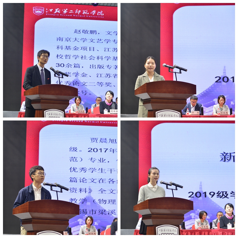 毕业于物理与电子工程学院的2017届校友、无锡市东林中学青年教师贾晨旭发言。他分享了自己在大学时的求学经历,勉励同学们汲取知识,增长才干,真正做到“崇德敬业,求真创新”。他说,幸福都是奋斗出来的,奋斗的青春最美丽,希望学弟学妹树立远大理想,热爱伟大祖国,担当时代重任,勇于砥砺奋斗,不负伟大时代,成就绚丽青春。