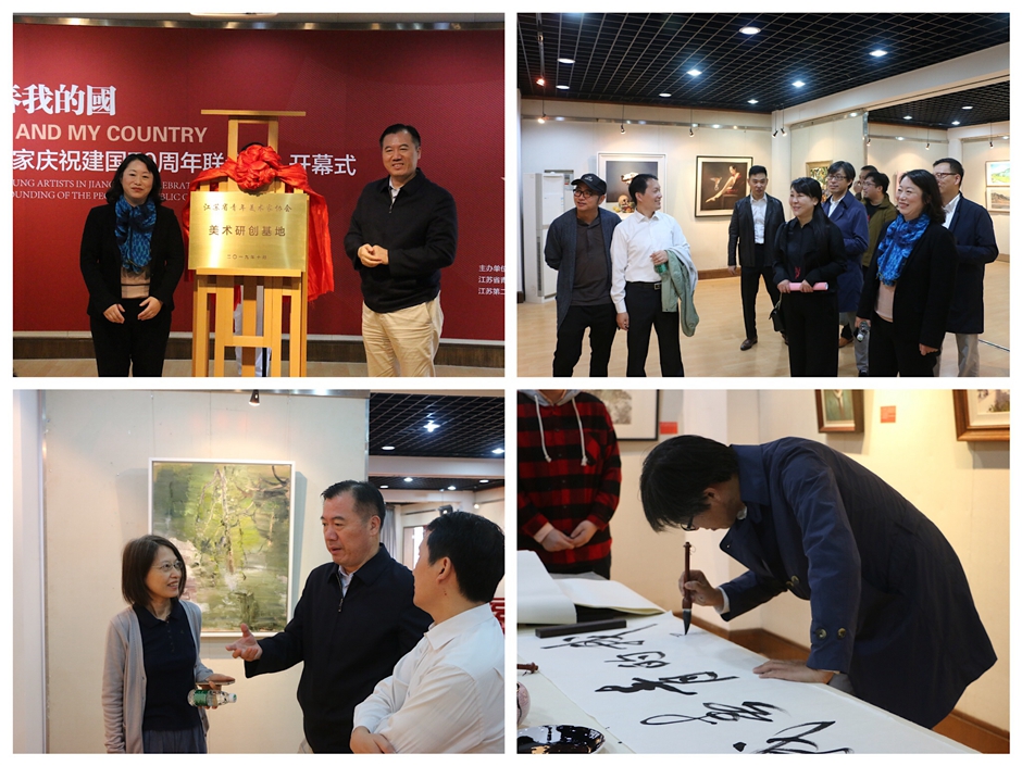 张迎春和祝兴成共同为“江苏省青年美术家协会美术研创基地”揭牌。