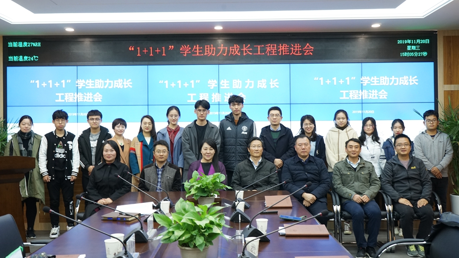 11月20日下午,校党委组织部、学工处、团委联合组织召开“1+1+1”学生助力成长工程推进会。校长王建,党委副书记、副校长刘继红,副校长祝兴成出席会议。第二班主任代表、联系班级学生代表和班长代表参加会议。会议由刘继红主持。