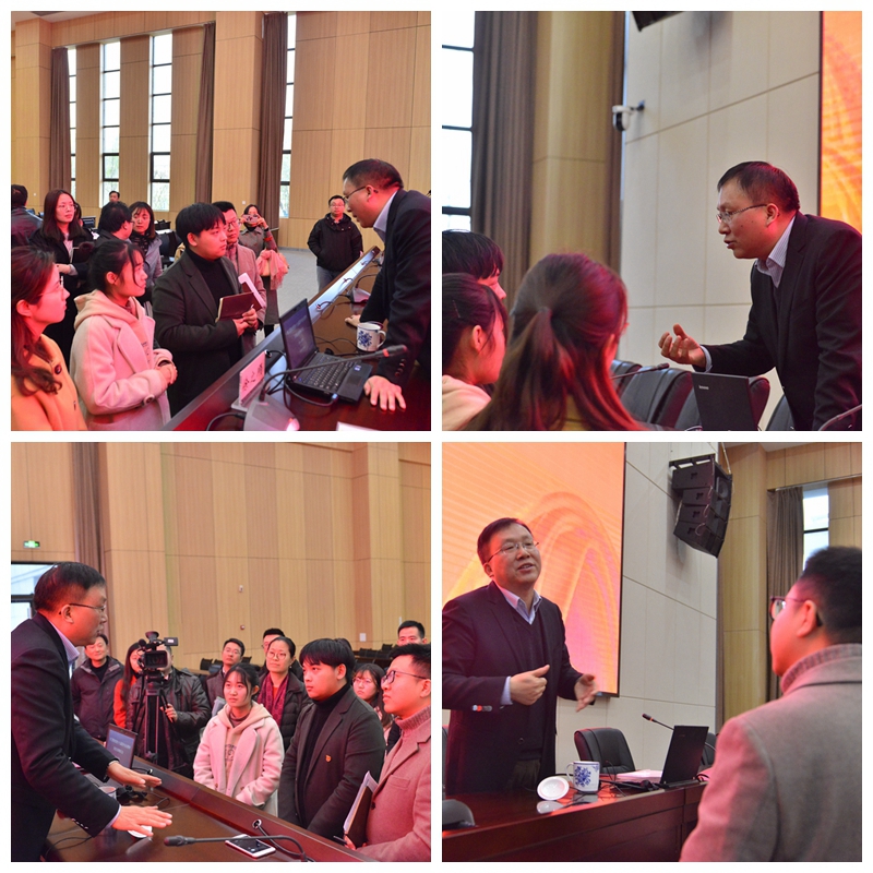 报告会结束后,徐之顺与院领导代表、二级党组织书记代表、马克思主义学院教师代表、教师党员代表、学生党员代表就学习贯彻党的十九届四中全会精神进行了互动交流。