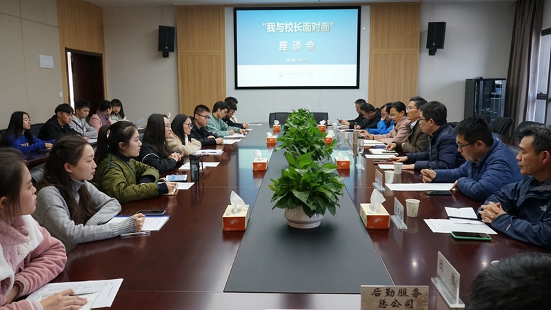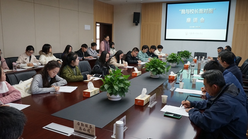 12月4日下午,我校在石湫校区召开“我与校长面对面”座谈会,校长王建与来自14个学院和自管会的19名学生代表亲切见面,听取同学们对学校各方面工作的意见和建议。座谈会由学工处处长杨思贤主持,党办校办、保卫处、团委、教务处、后勤处、基建处等职能部门负责人参加会议。
