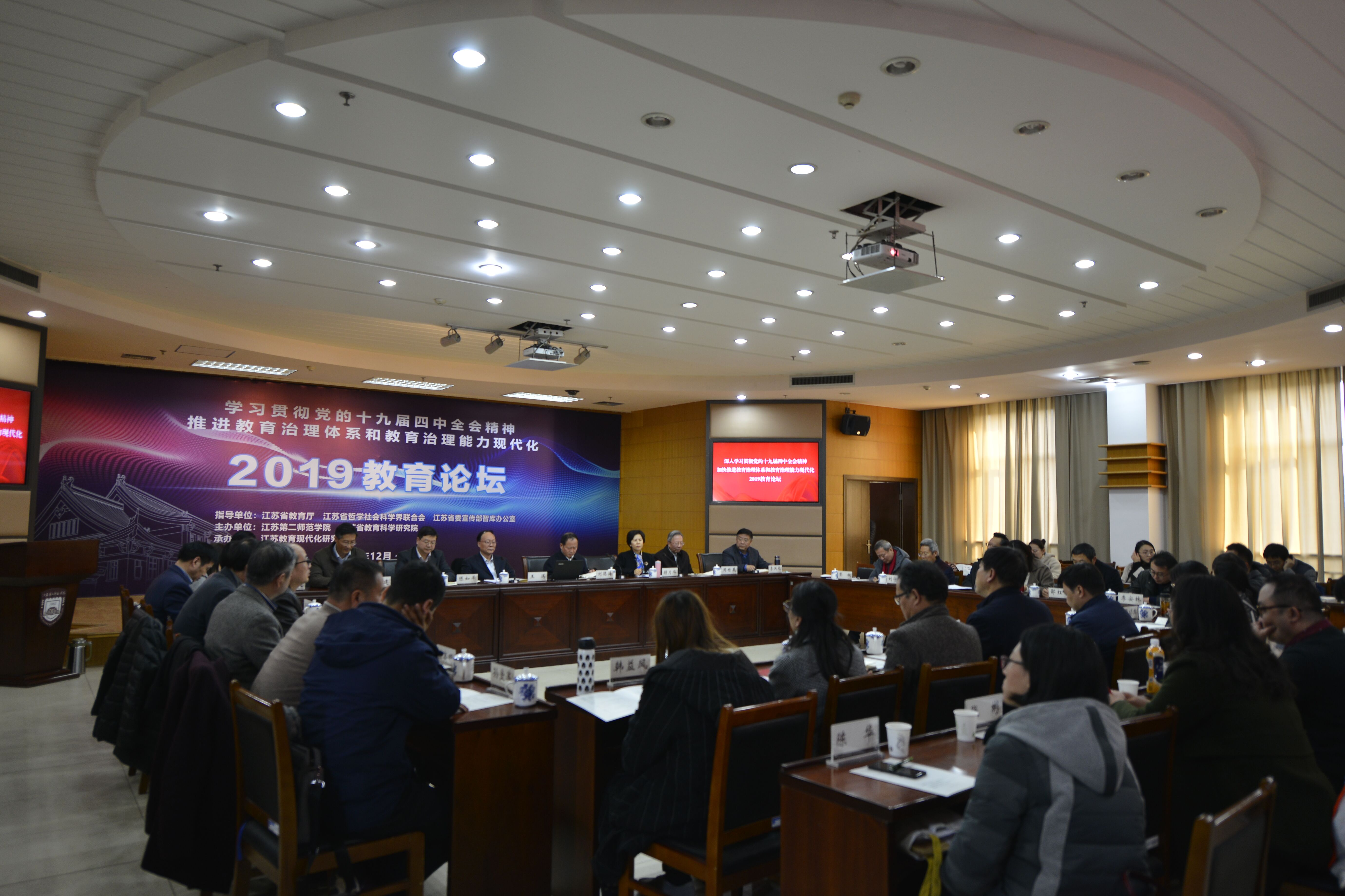 交汇点讯 12月6日到7日,由江苏第二师范学院、江苏省教育科学研究院主办,江苏教育现代化研究院承办的“2019教育论坛”在南京举行。来自全国的教育专家学者围绕学习贯彻党的十九届四中全会精神,共同探讨如何加快推进教育治理体系和治理能力现代化。