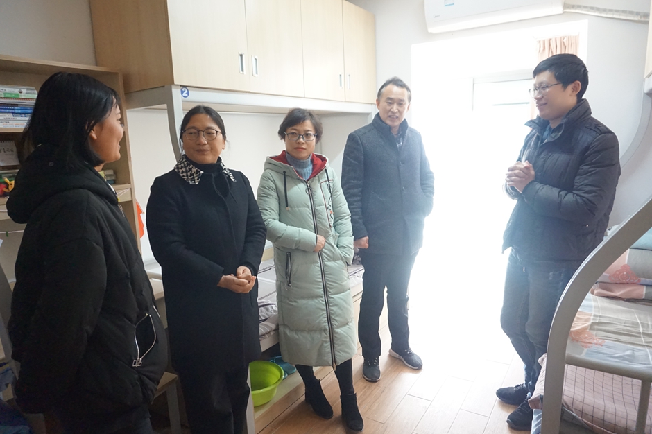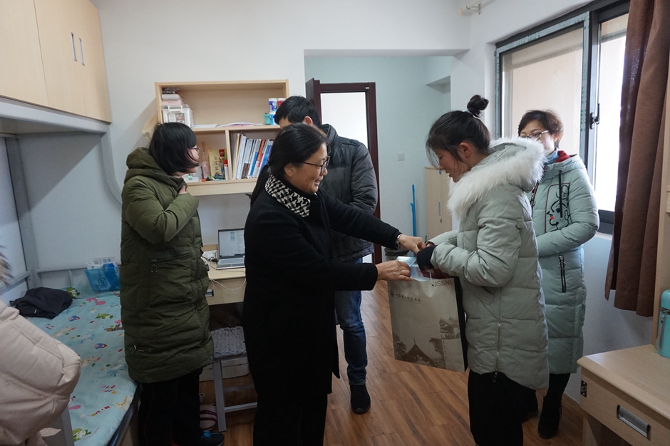 为真正贯彻落实国家、学校有关安全和资助政策,关心和帮助学生成长,12月31日下午,生化学院院长蒋功成、党总支书记陈建琴、副院长杜攀一行深入学生寝室,检查宿舍安全和卫生,并为学生送去新春祝福和慰问品。
