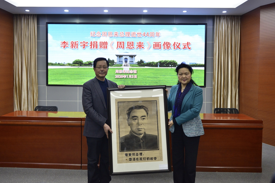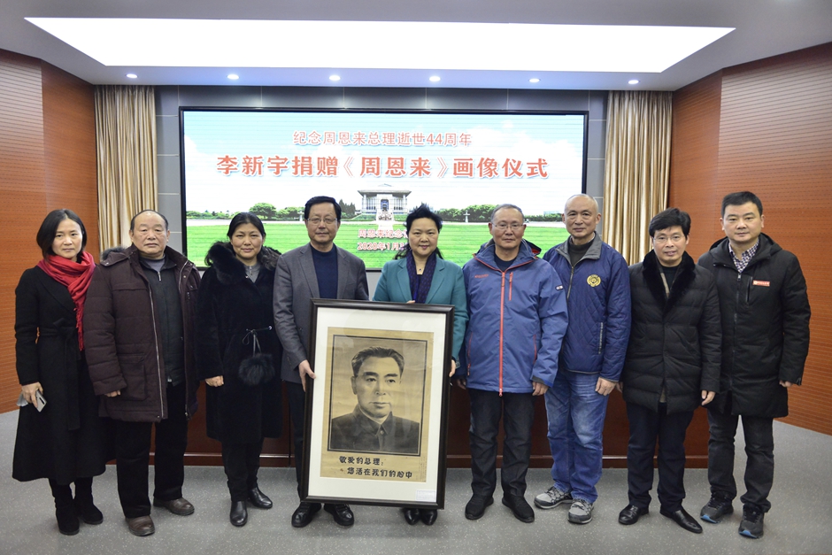 为纪念周恩来总理逝世44周年,2020年1月3日,我校教务处原处长李新宇来到淮安,向周恩来纪念馆捐赠了一副他绘制于1976年的《周恩来》炭精画像。校党委宣传部负责人等参加捐赠活动。