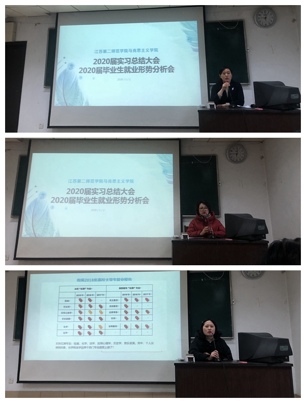 1月2日上午,马克思主义学院在草场门校区教二101教室举行2020届毕业生就业动员会,院长刘素梅、党总支副书记张圆、副院长张俊飞、辅导员、班主任和全体2020届毕业生参加会议,会议由学院就业专员刘琦主持。