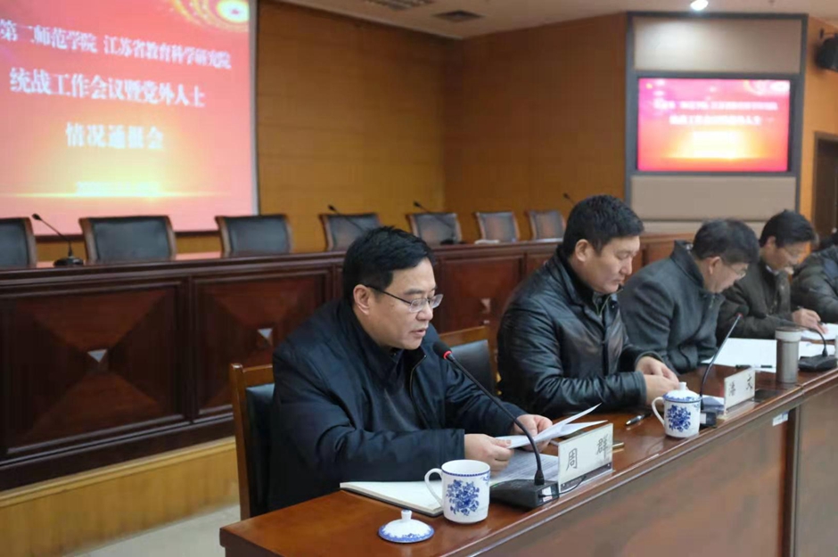 2020年1月19日上午,我院在草场门校区召开统战工作会议暨党外人士情况通报会。党委书记王仁雷,党委副书记、院长王建,党委副书记潘文出席会议。党委常委组织部部长刘守旗、宣传部部长卜玉平、统战部部长周群,院各民主党派负责人、党外人士代表、相关部门负责人及二级党组织书记参加会议。潘文主持会议。