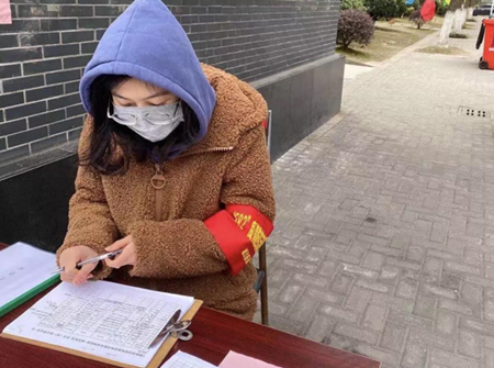 2017级电子信息工程专业高诗涵同学在家乡兴化市周庄镇街道负责出入镇口大门通道上居民往来、车辆通行的检查;2018级电子信息工程专业张璐佳同学在四川省洪雅县进行着科普宣传、扎堆人群的劝导工作;2019级物理学专业(师范班)洪兵妍同学在福建省溪美镇山村协助着人员进出控制、体温测量等工作;2019级物理学专业(师范班)张元同学在常州市金坛区华城二村做着社区内湖北返乡人员统计、进出社区人员检查登记工作。