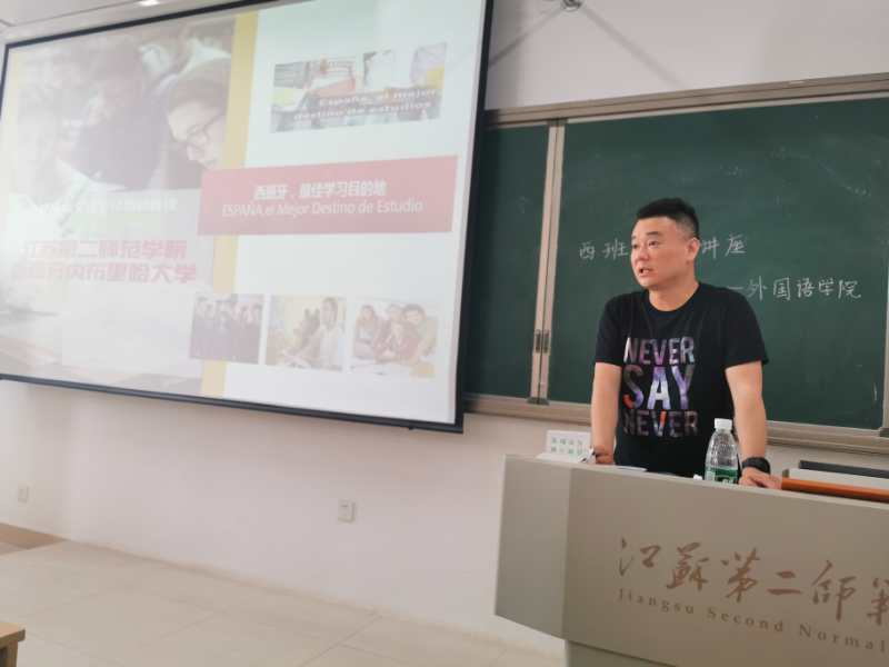 两位老师为外国语学院学生作了《对外西语教学——西班牙内布里哈大学王牌专业》主题讲座,内布里哈大学拥有最好的对外西语教育,常年为对外西班牙语教学提供优质师资、为西班牙语全球水平考试出题并参与考官培训和阅卷。西班牙语已经作为我国高中推广的语种,并有西班牙语高考命题。
