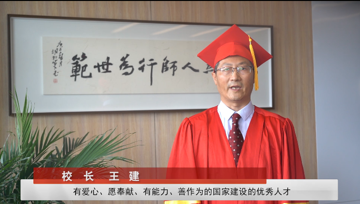 校长王建发表讲话。他说,因为新冠肺炎疫情的影响,今年的毕业典礼只能采取线上的方式,虽然他不能亲手为毕业生扶正学士帽上的流苏,但心中的喜悦和对同学们美好的祝愿丝毫未减。他代表全体师生,向全体毕业生表示热烈的祝贺,向为毕业生成长付出艰苦努力的老师和家长表示衷心的感谢。王建对本届毕业生在“石城讲坛”“师范生技能大赛”“文化艺术节”“大创项目”“卓培项目”等活动中的表现给予充分肯定,对同学们在校期间获得多项全国大奖给予热情赞扬。他表示,母校将和同学们一起,在追梦的道路上不懈奋斗,母校也是同学们永远的坚强后盾和精神港湾。他勉励同学们今后走上社会经历风雨,依然做到信念不减,初心不变。