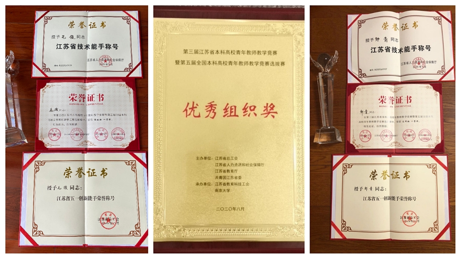 我校文学院邹青、马克思主义学院毛俊两位老师以扎实的理论功底、良好的心理状态、精湛的教学技艺,分获文科组和思政组一等奖,我校荣获竞赛优秀组织奖。根据省有关文件规定和组委会竞赛规则,邹青、毛俊两位老师还被省总工会授予“江苏省五一创新能手”称号,被省人力资源和社会保障厅授予“江苏省技术能手”称号,并可按规定程序向团省委申报“江苏省青年岗位能手”称号。