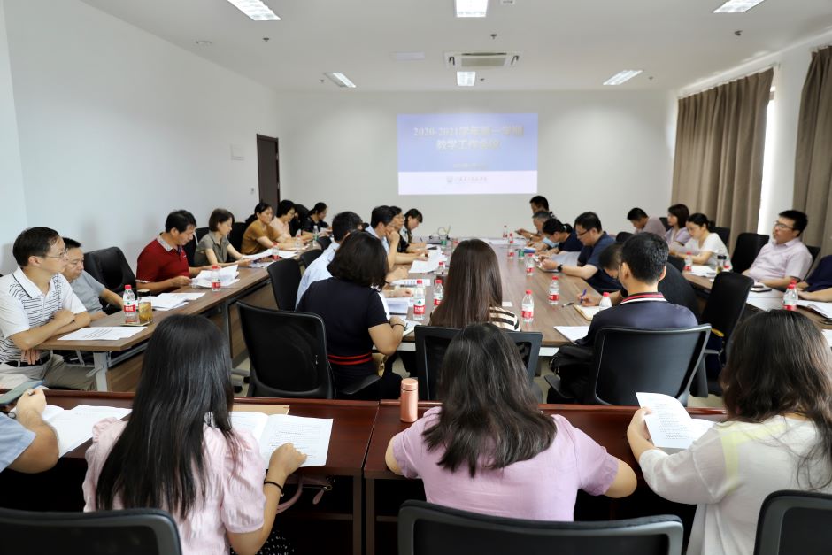 8月31日下午,我校在石湫校区召开本学期第一次教学工作会议。校长王建、副校长徐国华出席会议,教务处、质量监测与评估处、学生工作处、招生就业处、教师教学发展中心等部门负责人以及各二级学院院长和分管教学副院长参加会议,会议由徐国华主持。