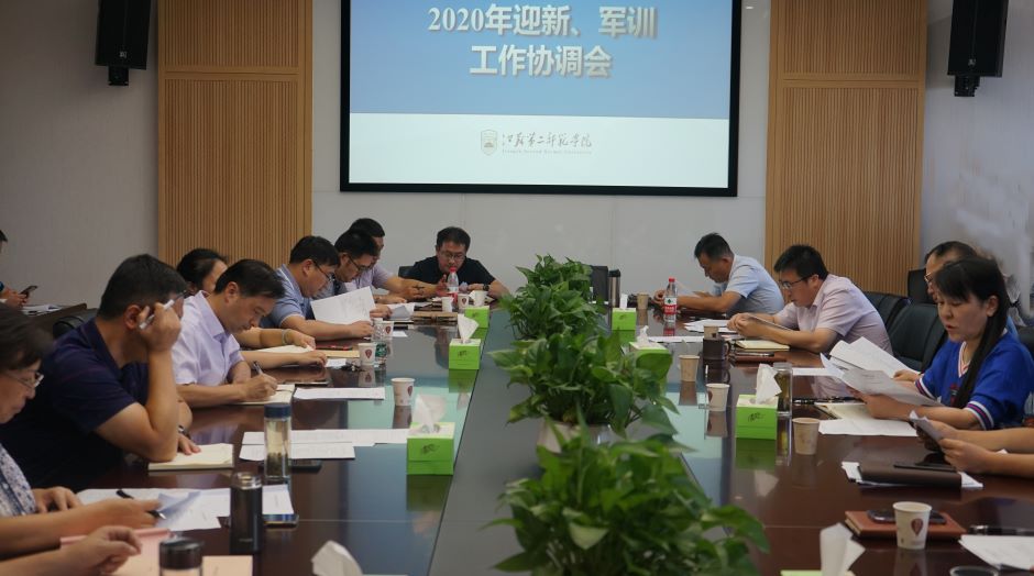 9月8日, 我校在石湫校区崇德楼318会议室召开迎新、军训工作协调会暨2020年秋季学期第一次学工例会。各相关职能部门负责人、二级学院学生工作负责人参加会议。党委副书记、副校长刘继红,副校长祝兴成出席会议,会议由学工处处长杨思贤主持。