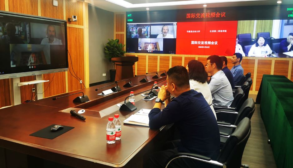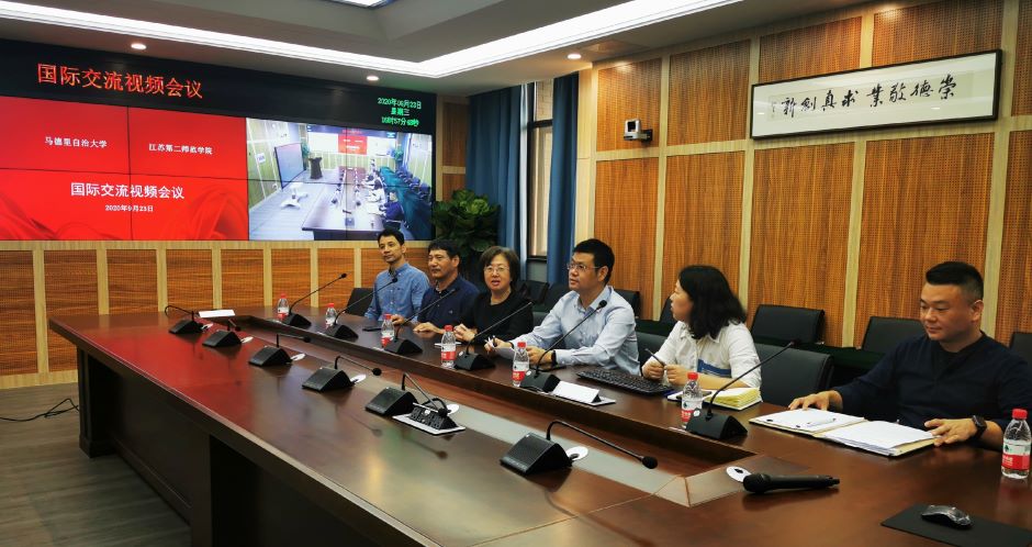 9月23日,由副校长刘贵友牵头,城环学院院长孙汉群、商学院院长孙爱军,国际处处长周韵以及罗丽冬在石湫校区教师教学发展中心与西班牙马德里自治大学副校长何塞、国际处负责人安朱莉以及西班牙大学联盟学生项目负责人召开视频会议,讨论两校的合作意向。西班牙大学联盟驻中国代表参加视频会。