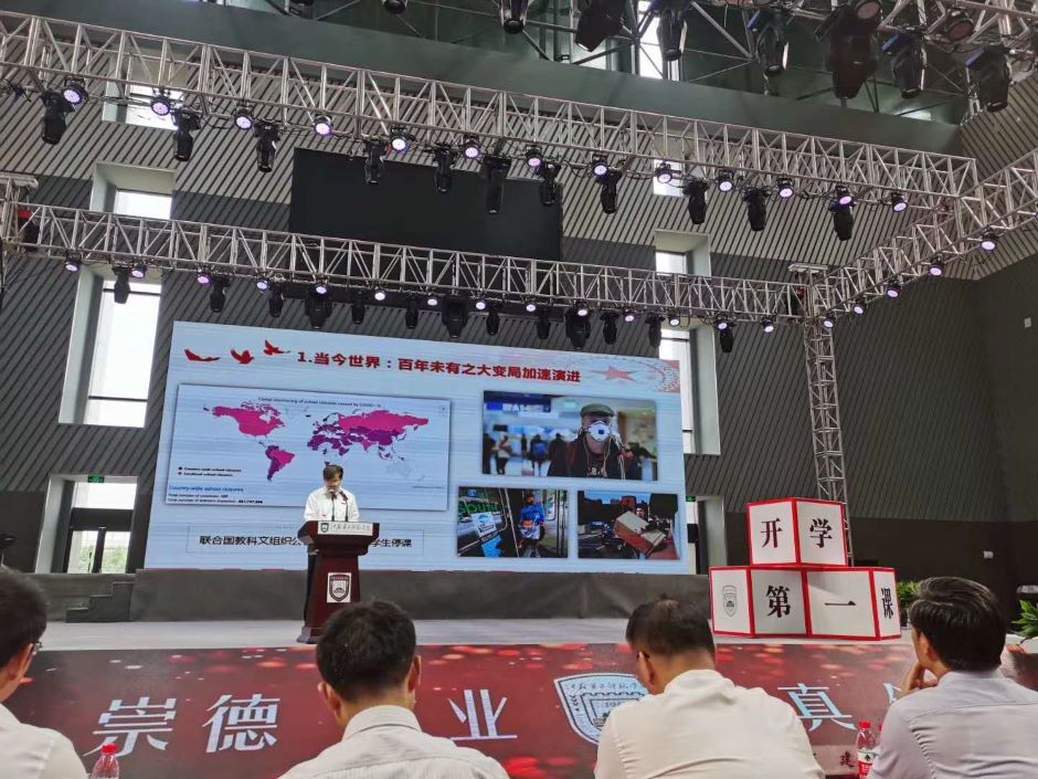 9月29日上午,党委书记王仁雷以“修身立德,筑梦前行”为主题,为全体新生上了“开学第一课”。全校3100余名本科新生以及相关部门、学院负责人分别在石湫校区体育馆主会场和各学院分会场聆听了开学第一课。