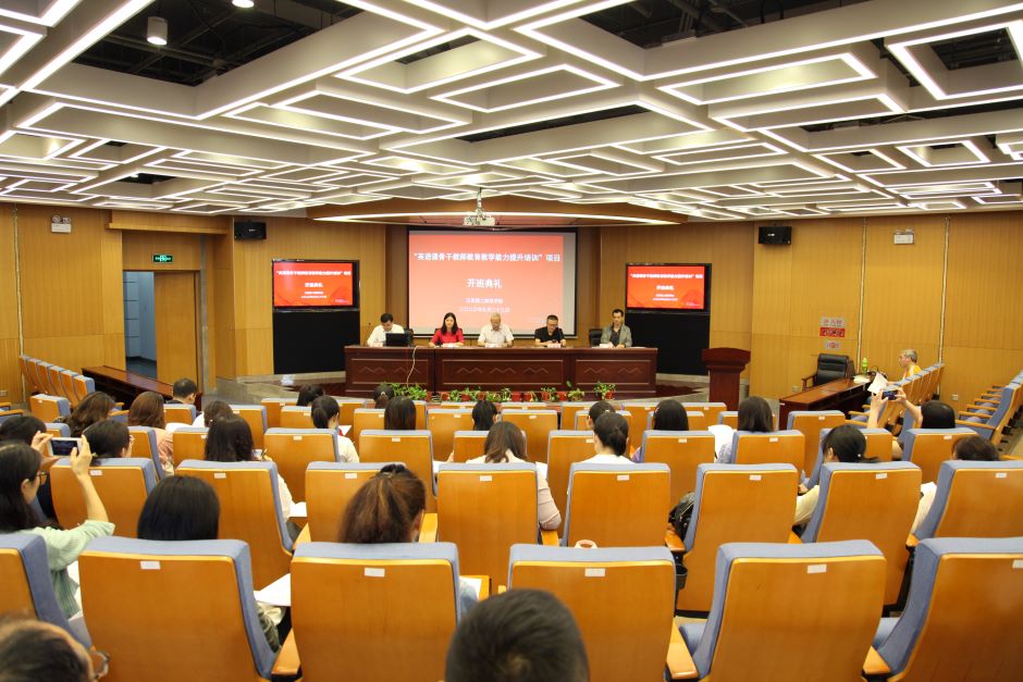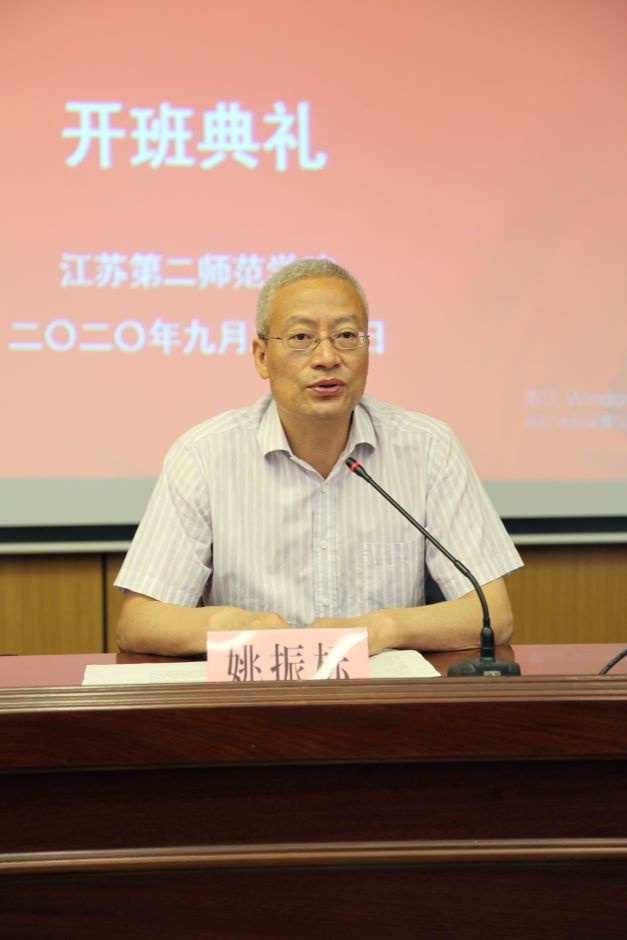 姚振标致欢迎辞。他全面介绍了我校的办学历史、办学特色和办学成果,勉励学员研修期间做到学思结合,知行合一,将所获得的新知识、新技能在自身教学中进行大胆实践并推广到所在学校和区域的英语教学和课程发展中。