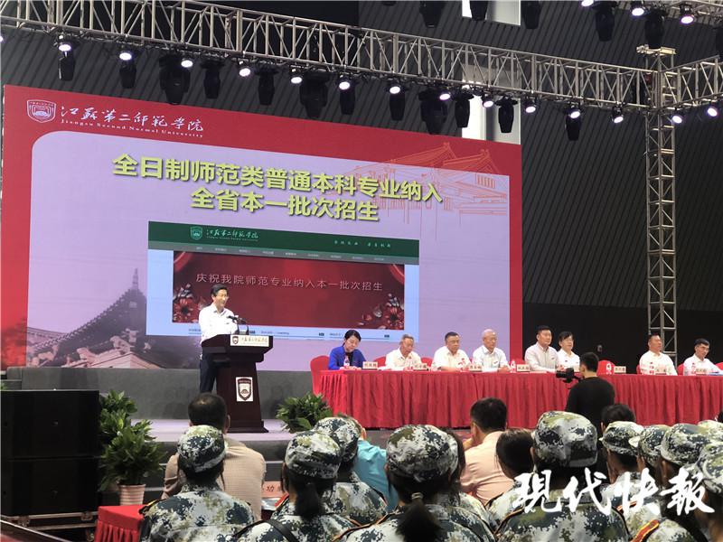 在这秋色迎新的美好时节,3193 名新生来到江苏第二师范学院,其中,今天过生日的有 7 名同学,我在这里祝愿这 7 名同学生日快乐! 江苏第二师范学院校长王建教授话音刚落,现场响起了热烈掌声,不少新生表示, 没想到校长这么暖!在开学典礼上,还想到为新生过生日。