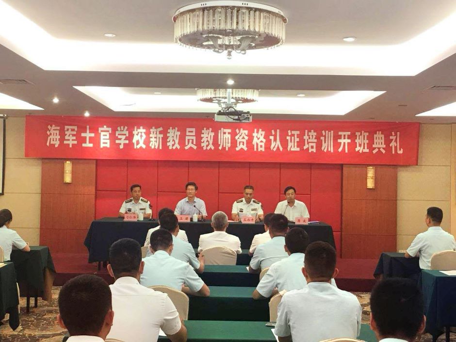 9月1日下午,海军士官学校新教员教师资格认证培训班在草场门校区开班。经过近一个月对《教育心理学》《教育学》《课程教学论》《教育科学研究方法》《教师职业道德》《教师基本教学技能训练》等课程的系统学习与研训,学员们经过单科考试与综合考核,全部通过了教师资格认证。