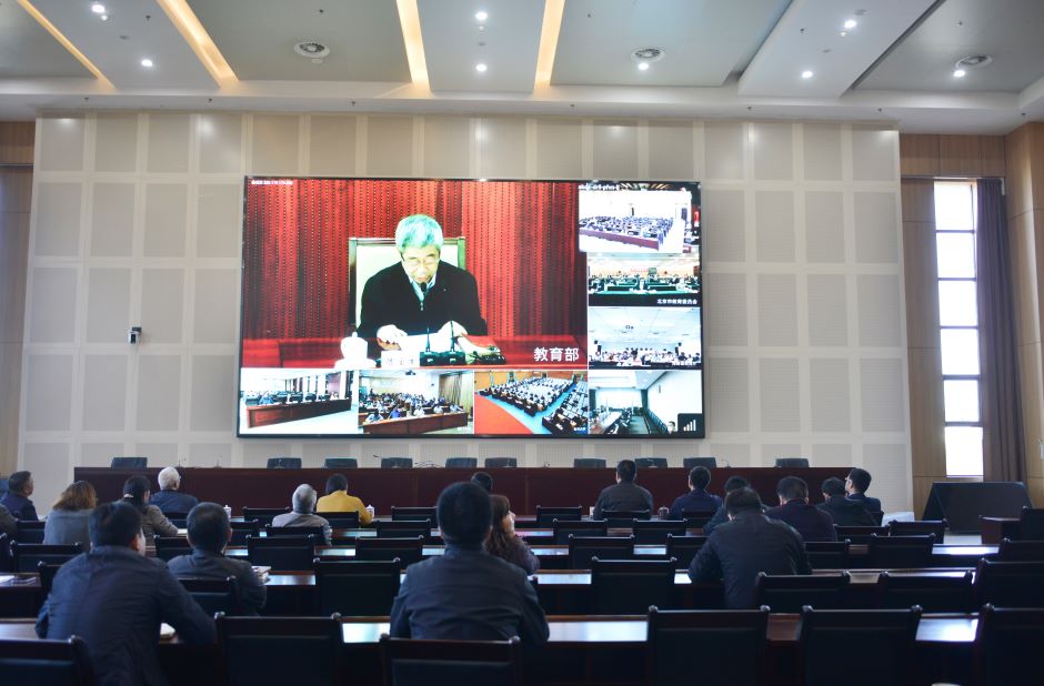 10月23日下午,中央教育工作领导小组秘书组、教育部在京召开贯彻落实《深化新时代教育评价改革总体方案》电视电话会议,中央相关部门、高校、各省(市、自治区)教育部门负责人出席会议。我校党委书记王仁雷参加江苏省教育厅分会场会议。校长王建,校领导刘继红、潘文、祝兴成、姚振标、徐国华、陈金如、刘贵友,二级学院党政负责人、职能部门负责人等在石湫校区敬业楼107报告厅分会场参会收听收看。