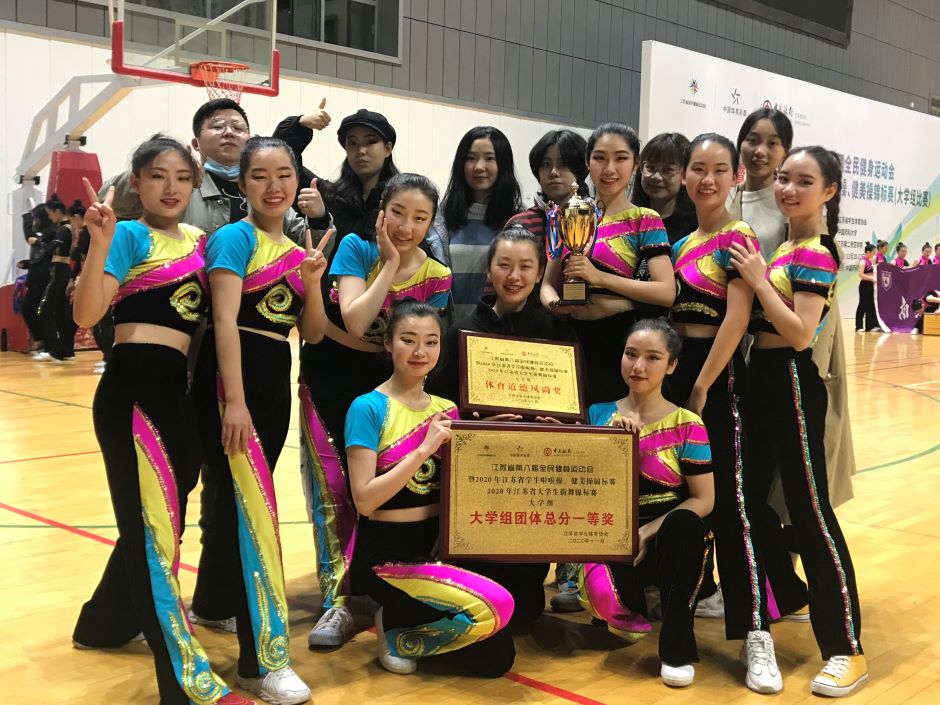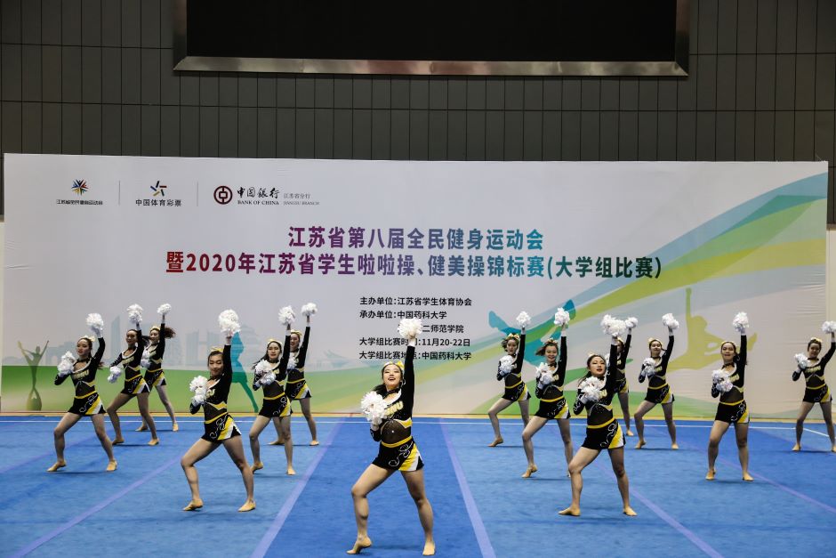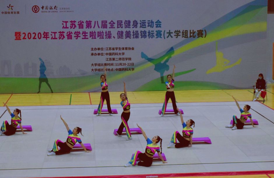 11月20日至22日,由江苏省学生体育协会主办,中国药科大学、我校承办的江苏省第八届全民健身运动会暨2020年江苏省学生啦啦操、健美操锦标赛(大学组比赛)在中国药科大学举行。来自全省的38所高校参加比赛,经过激烈的比拼,我校获高校甲组啦啦操自选动作第一名、啦啦操规定动作第二名、健美操有氧踏板第一名、舞蹈啦啦操团体第一名,并获大学组团体总分一等奖和体育道德风尚奖。