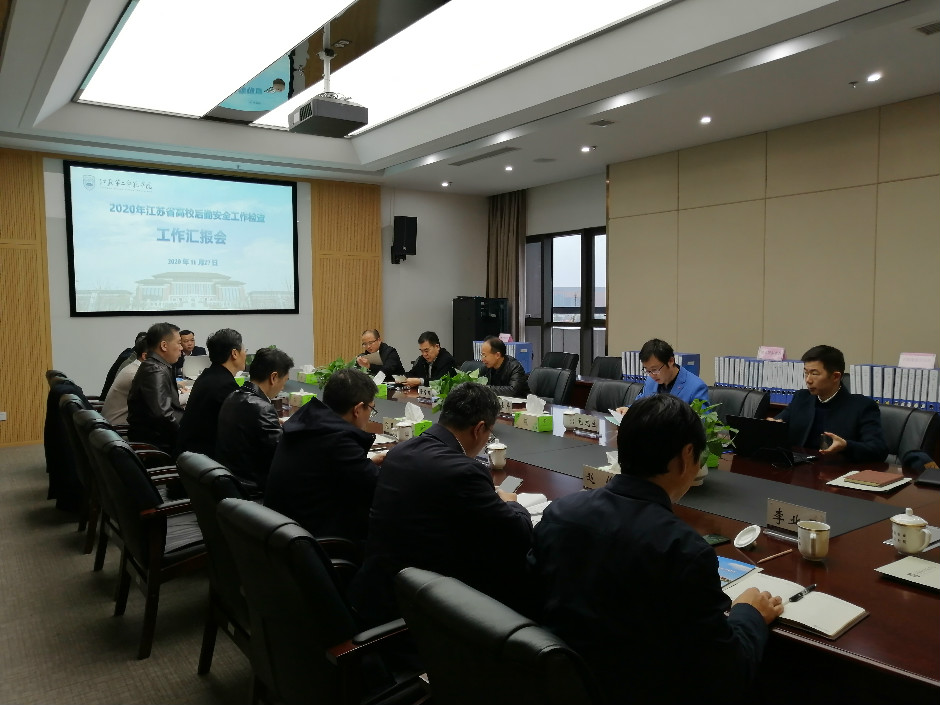11月27日上午,由江苏卫生健康职业学院副院长徐福田带队的江苏省高校后勤安全工作检查专家组莅临我校检查指导后勤安全工作。校长王建出席安全检查工作汇报会并致欢迎辞,副校长祝兴成作学校后勤安全工作汇报,校长办公室、后勤处、保卫处、后勤服务总公司、基建处、学生工作处、国有资产管理处等部门负责人陪同参加汇报检查。