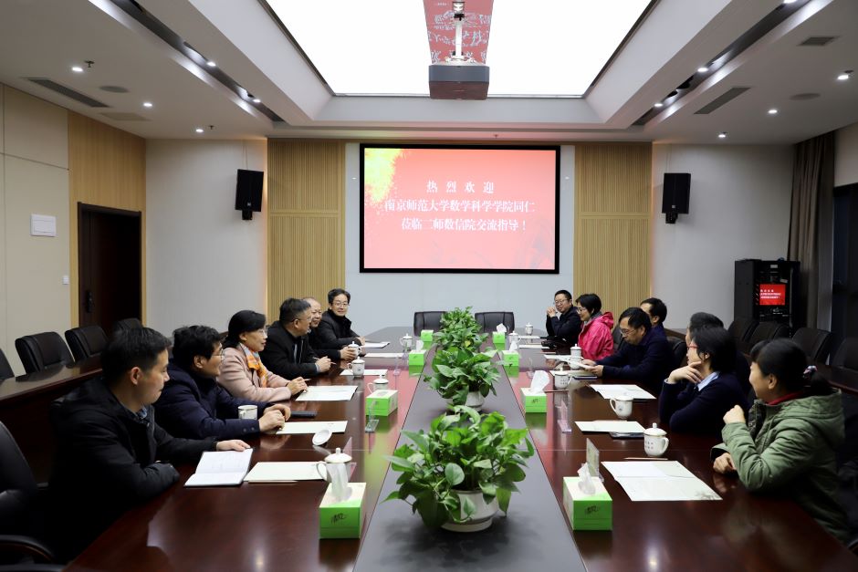 陈金如教授介绍了我校的历史沿革、发展现状以及未来规划,并指出学校高度重视校际间的学科专业合作。他表示希望双方加强沟通,增进友谊,进一步推动学科专业发展与合作。徐新萍教授回顾了我校与南京师范大学在人才培养、学术交流及教师进修等方面的密切合作,感谢南京师范大学数学科学学院长期以来对我校办学的支持。