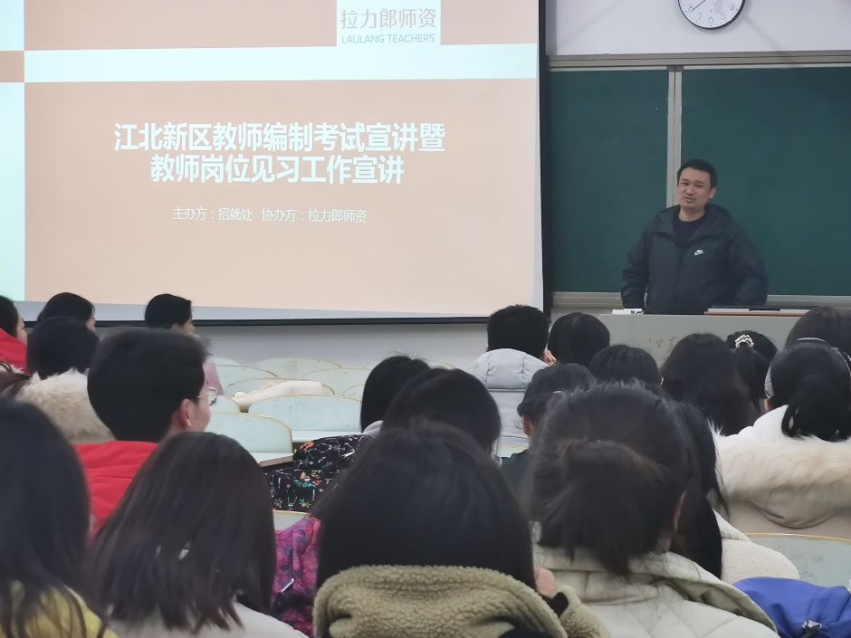 江北新区教社局师资培训服务商、我校校友、拉力郎师资负责人陈智雷等就教师考编、江北新区教师见习等相关情况作了进一步的说明。