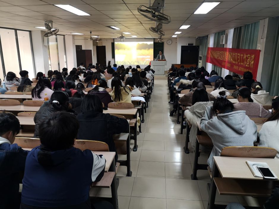 江北新区教社局副主任科员王珺作了“宁聚”计划、“聚新”行动相关政策和江北新区有关创新创业政策的解读,他表示,江北新区是座正在长江北岸快速崛起的新主城,欢迎青年学子以此次见习为契机,在实践中深入了解新区、融入新区。江北新区教社局就业管理科科长许加云就就业见习基本概念、见习报名流程、见习开始、见习补贴申请等报名工作作了详细的政策解读和流程操作讲解,特别就教师见习岗位向同学们作了情况介绍。