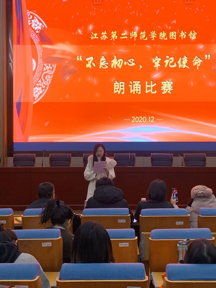 12月9日,图书馆直属党支部在石湫校区图书馆报告厅开展“不忘初心、牢记使命”主题朗诵比赛,全体党员以朗诵比赛的形式抒发爱国爱党之情。《我骄傲,我是中国人》饱含作为中国人的自豪之情;《不忘初心、牢记使命》流露出一个共产党人勇于担当的气魄;《祖国在上》热情表达了赤诚的爱国之心……同志们轮番上台,一首首红色经典诗歌铿锵有力,一段段精彩朗读抑扬顿挫,诵读者慷慨激昂,听者热血沸腾,让在场的党员内心深处接受了一次红色文化的洗礼,更加坚定了爱党信党跟党走的信念。