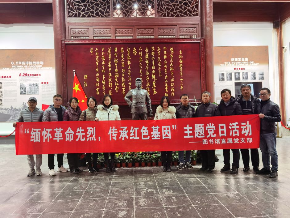 12月5日,图书馆直属党支部全体党员赴横山新四军革命纪念馆和高淳新四军第一支队司令部旧址等红色革命遗迹,开展“缅怀革命先烈,传承红色基因”主题参观学习活动,接受先辈精神洗礼,重温革命历程。在新四军革命纪念馆,党员同志们仔细观看了展厅内100多幅历史照片和30多件历史文物,重温了跌宕起伏的革命峥嵘岁月。在高淳新四军第一支队司令部旧址,同志们缅怀革命先烈,致敬陈毅元帅,瞻仰革命遗迹,重温艰苦的抗战历程。