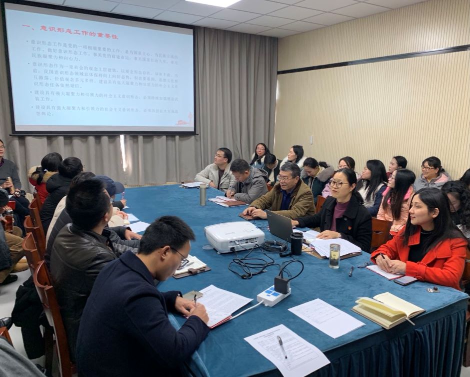 12月16日,文学院教工党支部与机关党委第十五支部举行意识形态工作专题学习会。会议由文学院党总支书记刘莹主持,文学院教工党支部和机关党委第十五支部全体党员参加专题学习会。