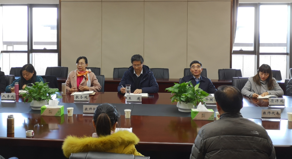 为进一步落实本科教学合格评估整改工作,实实在在听取教师意见、扎扎实实解决教师的问题,12月17日上午,我校召开教师座谈会。校长王建、副校长徐国华出席会议,各二级学院教师代表,教务处处长徐新萍、质评处处长陈蓓、人事处副处长王瑾及相关工作人员参加会议。会议由徐国华主持。