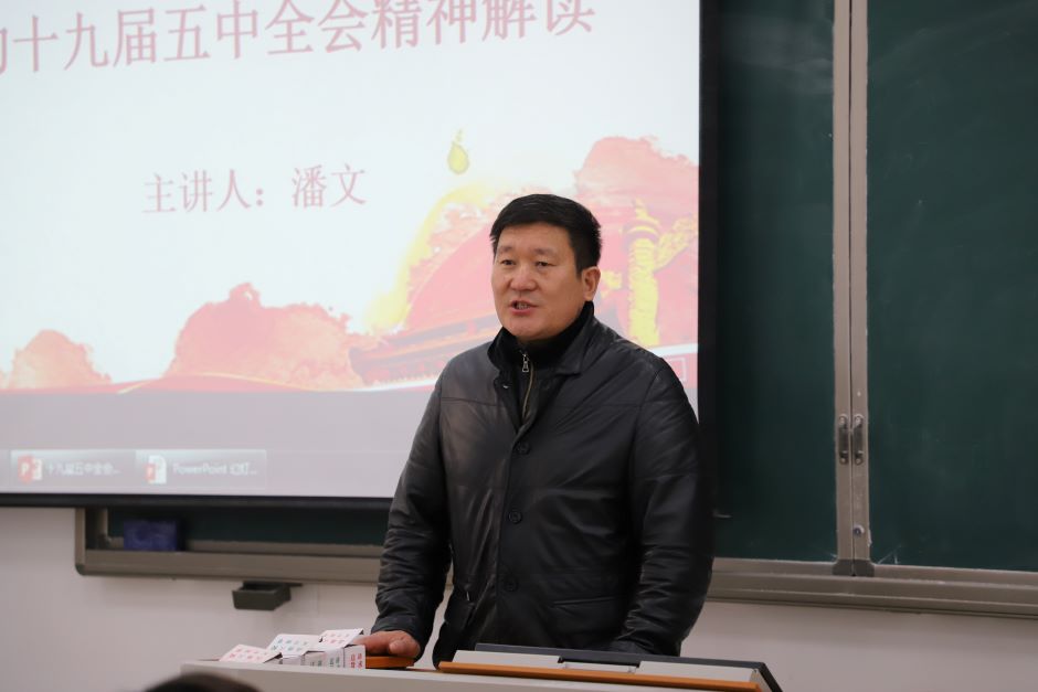 潘文结合自己的生活工作经历,围绕学习十九届五中全会精神的体会,从科学把握新发展阶段、深入贯彻新发展理念、加快构建新发展格局、坚持党的全面领导四个方面,对党的十九届五中全会精神进行了解读。他指出,十九届五中全会是在我国将进入新发展阶段、实现中华民族伟大复兴正处在关键时期召开的一次具有全局性、历史性意义的会议。会议通过的规划《建议》是一个广泛凝聚共识、汇聚全党全社会智慧的成果,是一个充分反映社会期盼、专家意见、基层经验的成果,是一个生动体现我国党内民主和社会主义民主实践的成果。