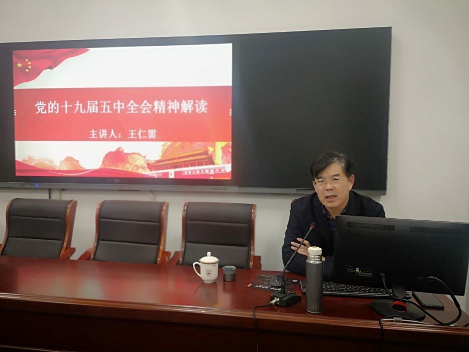课上,王仁雷介绍了党的十九届五中全会概况,围绕习近平总书记在全会上的重要讲话精神和全会审议通过的规划《建议》,从准确把握决胜全面建成小康社会取得决定性成就、准确把握《建议》的核心要义、准确把握《建议》的主要内容等方面,以一个主题、两件大事、三个“新”、四个全面、五大理念、六个目标为框架,对党的十九届五中全会的主要精神进行了解读。他指出,党的十九届五中全会是在“两个一百年”历史交汇点上召开的一次具有全局性、历史性意义的重要会议;规划《建议》集中了全党全社会的共识和行动智慧,汇聚了“十四五”规划和2035年远景目标新蓝图,令人振奋、令人鼓舞,是全面建设社会主义现代化国家的纲领文件,对动员和激励全党全国战胜前进道路上各种风险挑战,为全面建设社会主义现代化国家开好局,起好步,为实现中华民族伟大复兴的战略全局接续奋斗,具有十分重要的意义。