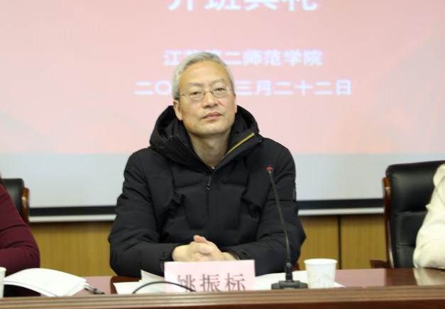 姚振标致辞。他介绍了我校的办学历史与发展特色、改革创新与丰硕成果,勉励学员们珍惜培训机会,用好培训资源,主动研修,知行合一,成为兵团基础教育英语教师的“排头兵”。王雨疏代表兵团教育局对我校多年来对兵团教师的教学研修和专业发展所开展的工作和所做出的贡献表示衷心感谢。她就学习、生活和纪律等方面对全体学员提出了明确要求,希望学员钻心研修、学以致用,成为兵团英语教学改革创新的“领头羊”。徐群介绍了我校开展“国培计划”教师培训工作的历史经验,回顾了我校在兵团英语教师培训工作中的实际成绩。她指出,我校与兵团教育局在教师培训方面的合作一定会秉持“共享、共赢”宗旨,协同谋划,不断深入内涵建设,不断提升培训绩效。张莉对本次培训的研修目标和课程体系、教学理念和活动形式等进行了具体部署,要求全体学员沿着“理论为基础、实例为影子、问题为线索、实践为检验、实践性理论为归宿”的研修路径,在浸入式的研修模式下努力发展成为“种子”教师和学科专业带头人。余鑫对疫情防控工作作了部署。两个班的领队老师分别作了发言。