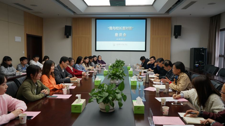 3月31日下午,我校在石湫校区召开“我与校长面对面”座谈会,校长王建与来自石湫校区11个学院的21名学生代表亲切见面,听取同学们对学校各方面工作的意见和建议。座谈会由学工处处长杨思贤主持,党办校办、保卫处、团委、教务处、招就处、后勤处、后勤服务总公司、图书馆等职能部门负责人参加会议。