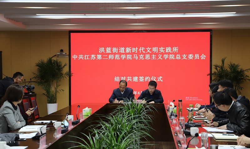 4月14日,马克思主义学院党总支与溧水区洪蓝街道新时代文明实践所举行结对共建签约仪式暨党史学习教育专题宣讲会,探讨共建合作模式、签订结对共建协议,举行党史学习宣讲,力争通过优势互补、资源共享,实现以共建深化人才培养、推动地方发展。马克思主义学院党总支书记庞爱中,溧水区洪蓝街道党工委副书记、办事处主任、洪蓝街道新时代文明实践所副所长濮帅出席活动。