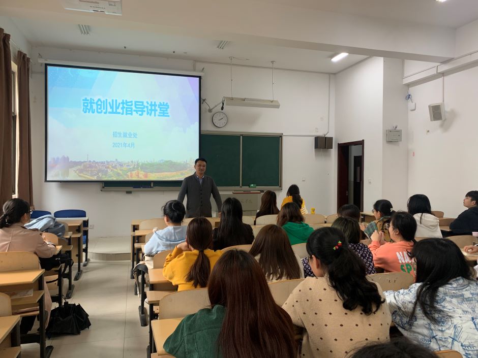 4月21日下午,招生就业处邀请南京大学附属中学团委书记呙睿来校作大学生涯规划讲座。讲座由招生就业处副处长黄晓波主持。