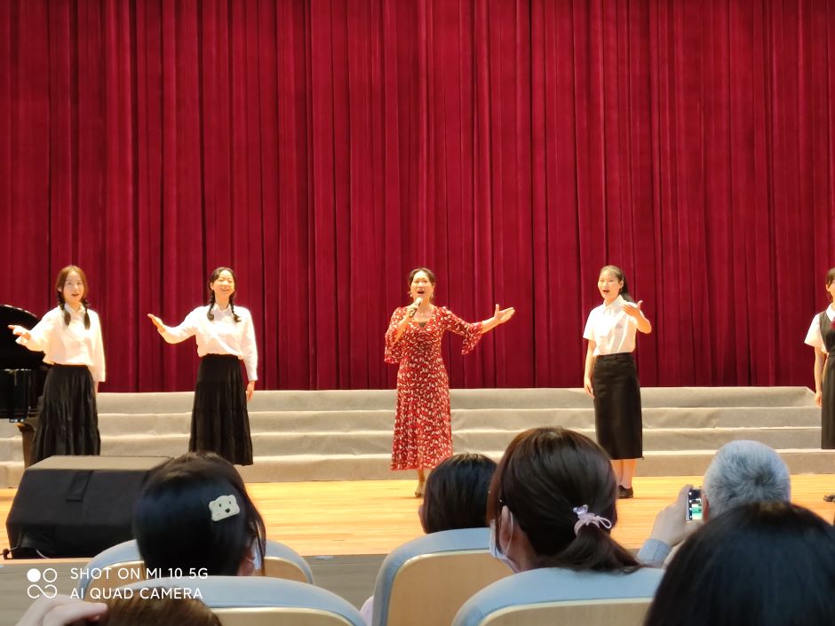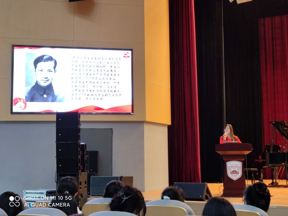 课堂上,胡建林演绎了大家耳熟能详的音乐作品,如《南湖的船啊党的摇篮》《南泥湾》《游击队歌》《保卫黄河》《红梅赞》《唱支山歌给党听》《春天的故事》等,串起了从中国革命、建设、改革开放到新时代的历史进程,她用专业的历史讲解和娓娓道来的音乐故事,让学员们在欣赏音乐的同时,深刻了解了百年党史以及这些音乐作品所反映的革命先辈们的奋斗历程。最后,全场师生一同唱响《没有共产党,就没有新中国》,将全场气氛推至最高潮。