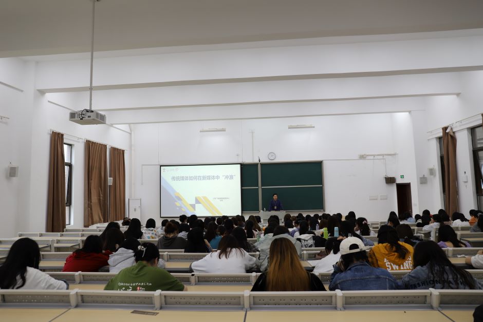王尧记者以“传统媒体如何在新媒体冲浪”为题,与在座同学分享了工作经历与专业知识。在新媒体横行的时代,传统媒体是否会被淘汰?而作为传统媒体,又该用什么样的方式留住人们的流量和吸引大众的眼球?作为一名记者,如何对热点话题进行捕捉?王尧记者结合他参与采访的几段经历和大量的实例,指出了作为新闻人所需的素养。他还结合实例分析阐述了微博、微信、抖音短视频的制作要领。王尧记者专业的分享与实操的多样丰富给大家打开了一扇传媒时代“冲浪”的大门。